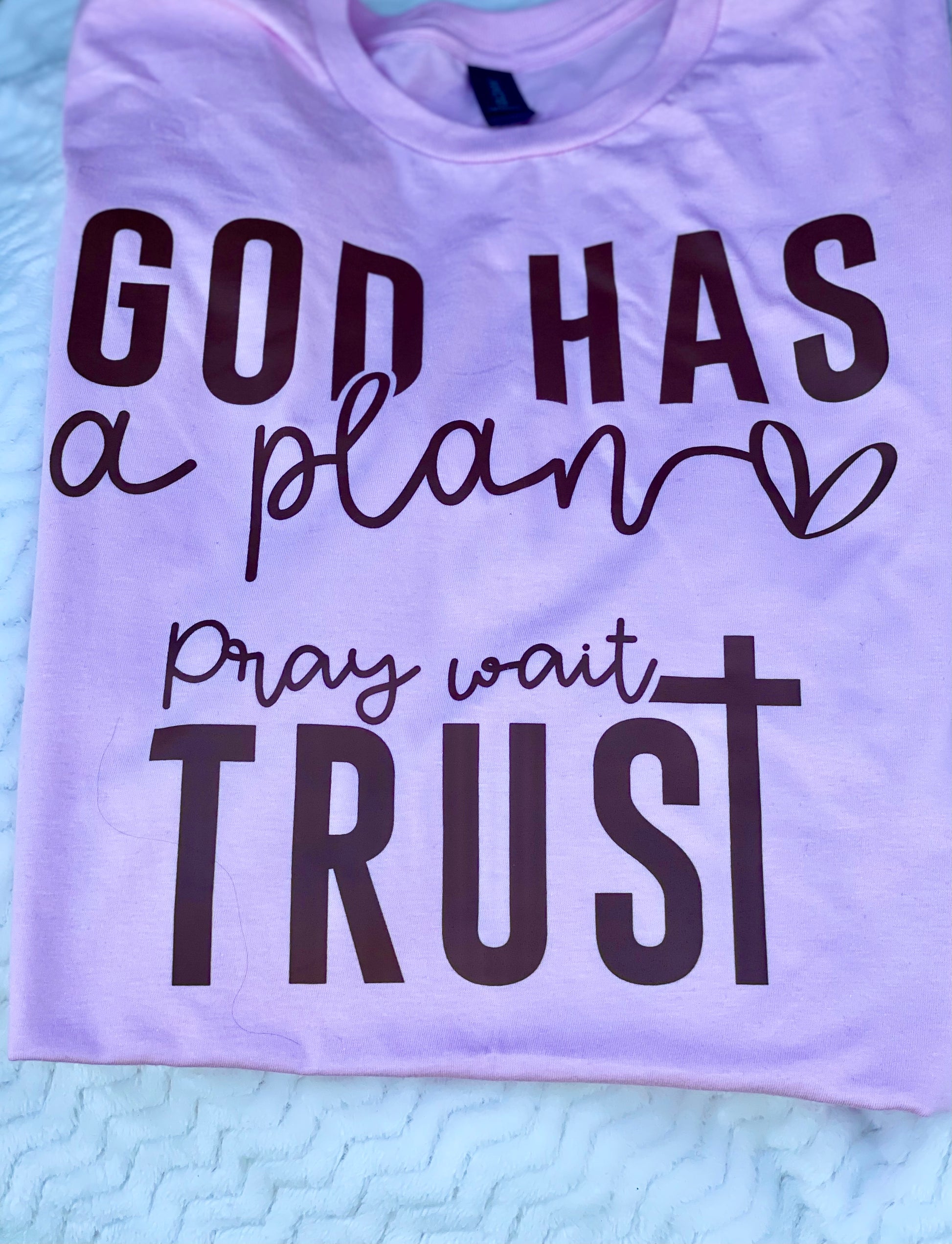 “God Has a Plan” Christian T-Shirt – Pray Wait Trust Faith Tee for Women & Men