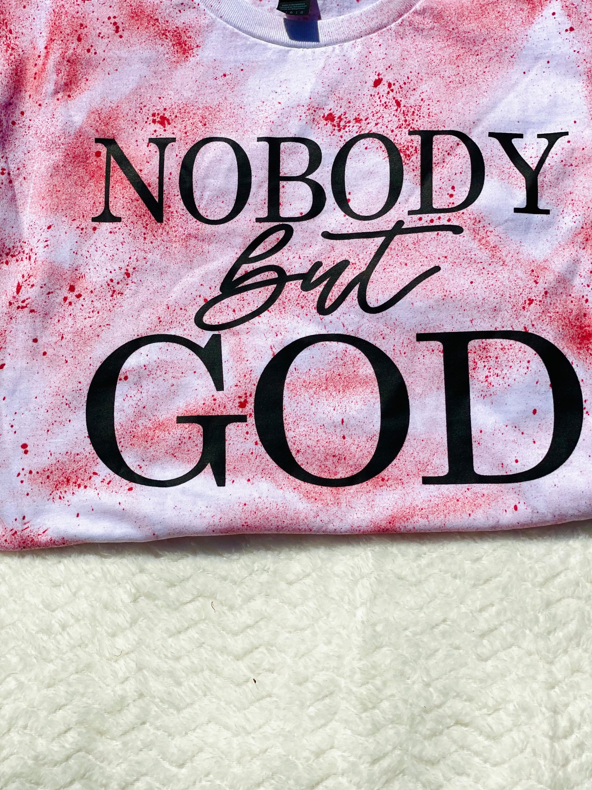 Make a bold statement of faith with our “Nobody but God” Christian T-shirt. Crafted from soft, breathable cotton, this unisex tee features a clean, modern design that’s both comfortable and meaningful. Whether you're wearing it to church, out with friends, or sharing your testimony through fashion, this shirt is a simple yet powerful reminder of who’s always in control.