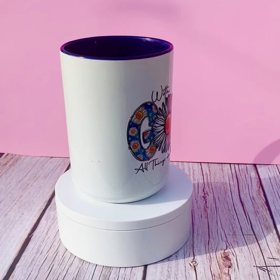 Start your morning grounded in faith with our beautifully crafted ceramic coffee mug. Featuring the timeless scripture “With God All Things Are Possible”, this mug combines daily inspiration with everyday function. The white body and contrasting blue handle create a modern, stylish look—perfect for home, office, or as a thoughtful gift.