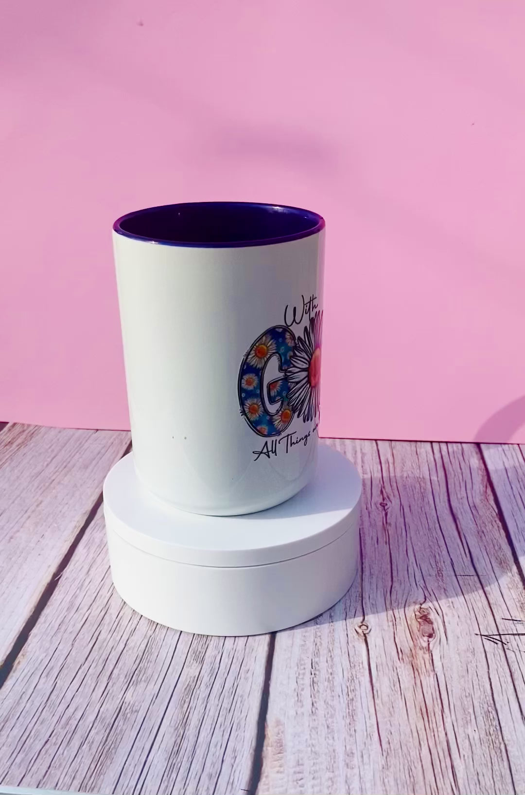 Inspirational Christian Mug – “With God All Things Are Possible” – Blue Handle, 15oz